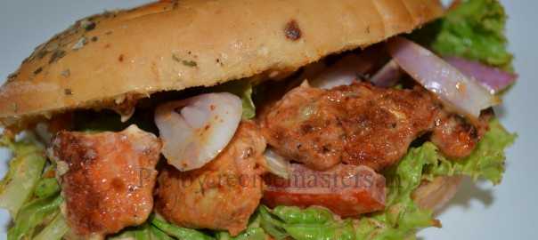 Chicken bread roll sandwich. A delicious and filling sub sandwich, another good way to use up your leftover grilled, fried or tikka chicken.